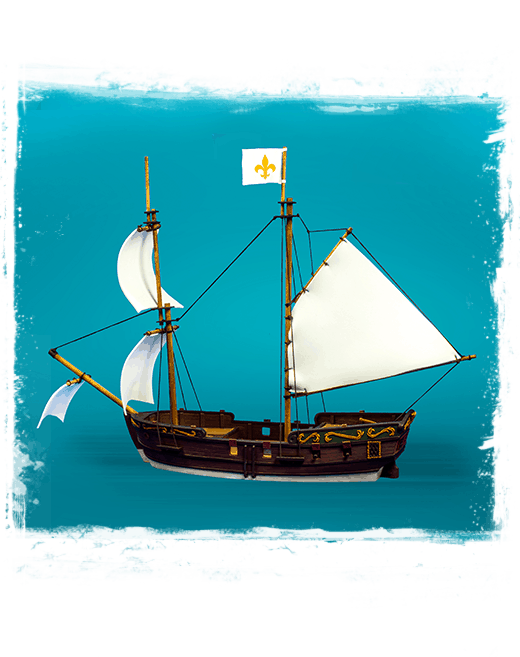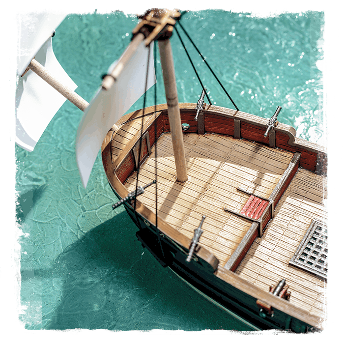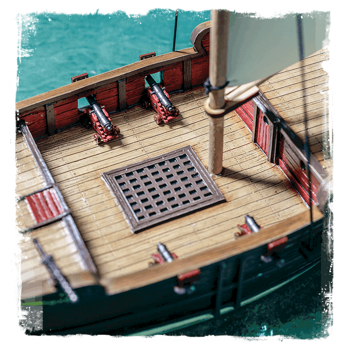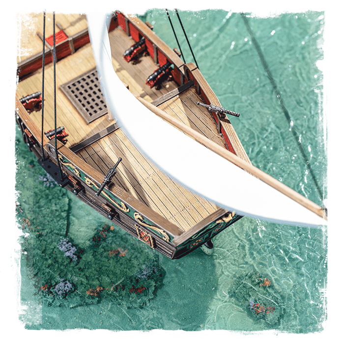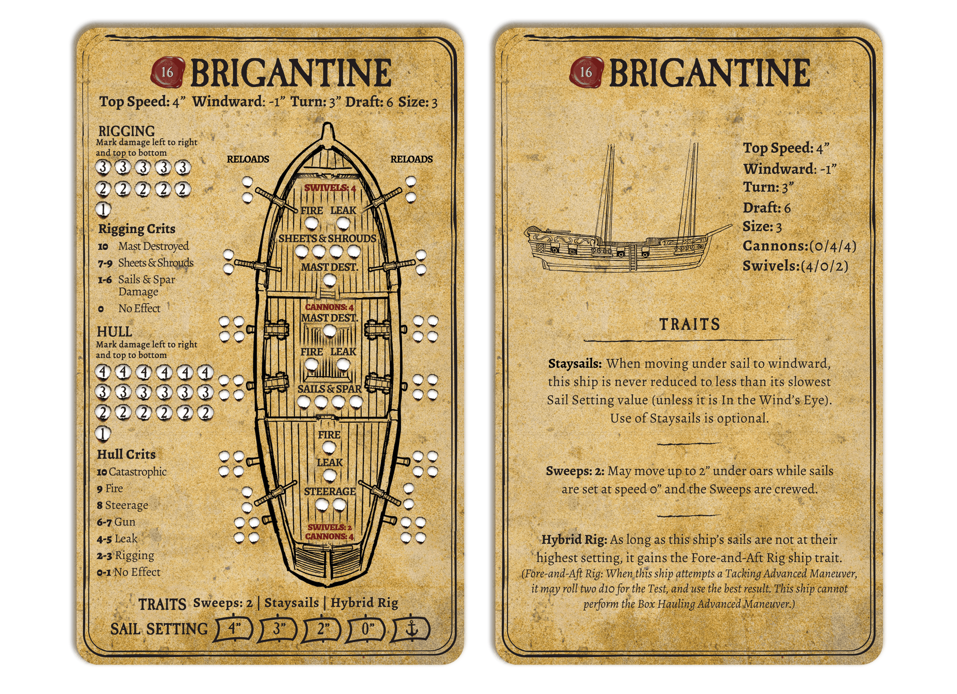 Brigantine: Quick, sturdy and well-armed, the brigantine is suited to handle nearly any situation. This ship’s shallow draft and mixed rig configuration gives it a versatility which made it very popular among Pirate and Privateer crews.