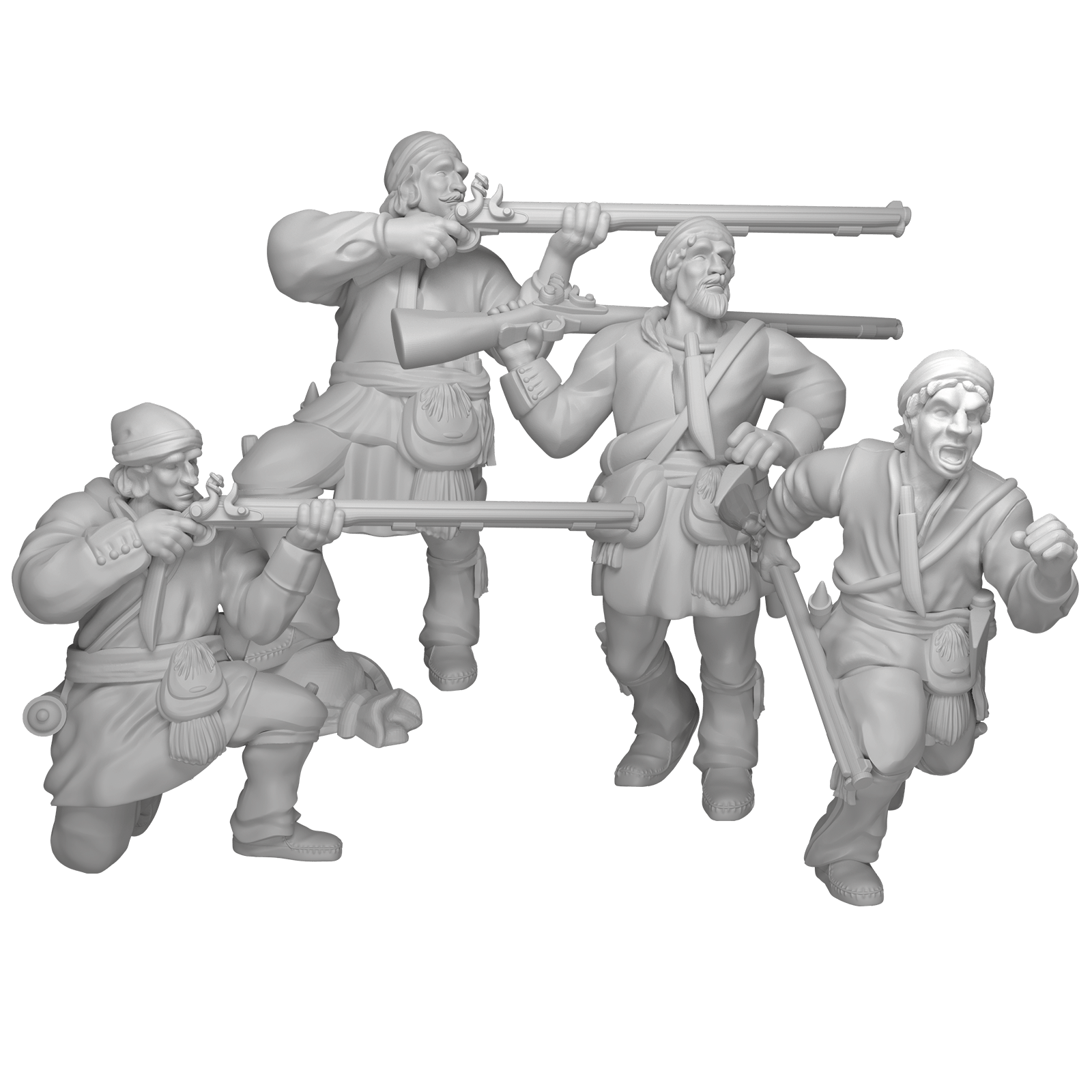 Made up primarily of fur traders and other hardy woodsmen, these French pioneers prove to be effective fighters and deadly accurate with their firelocks.