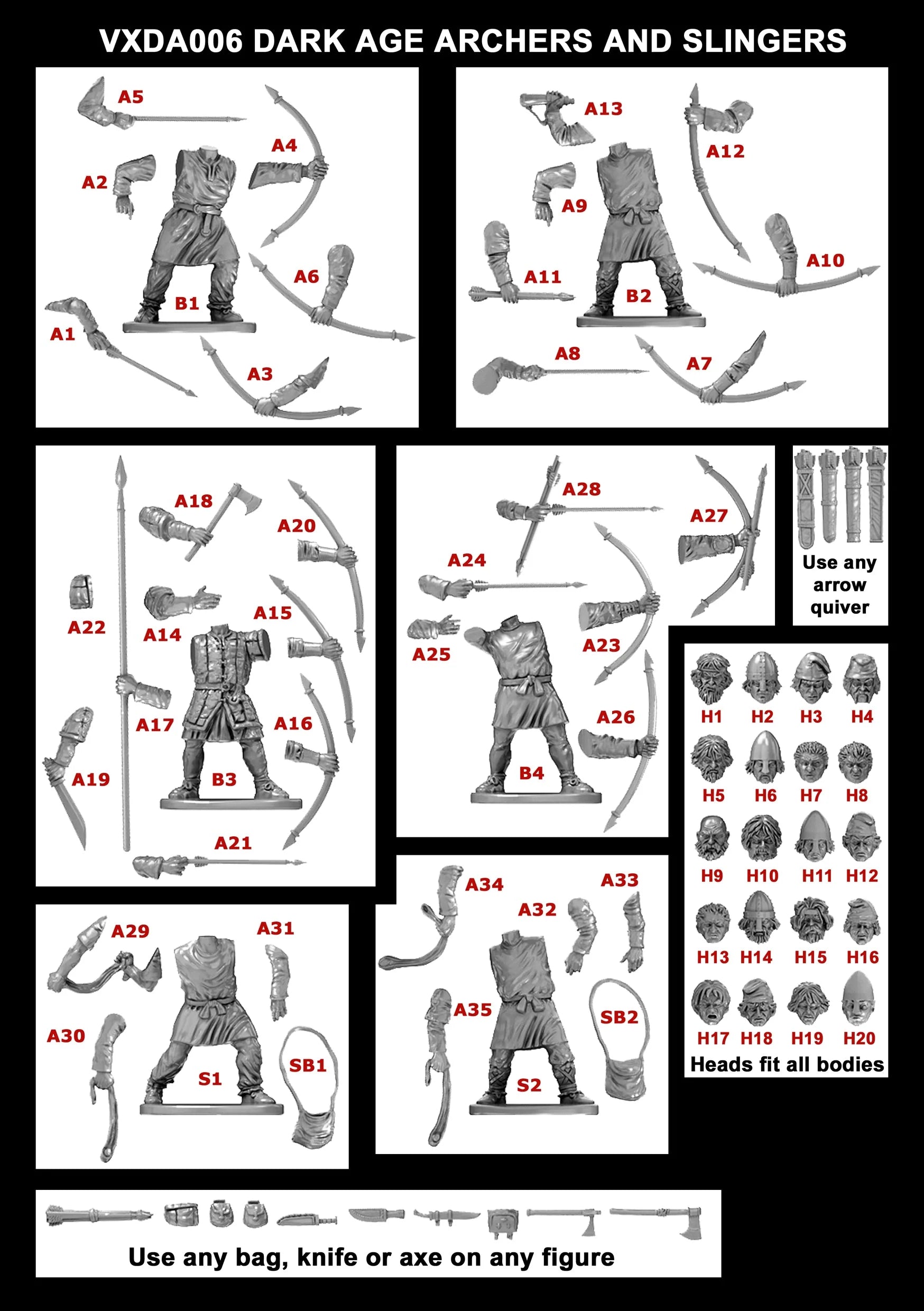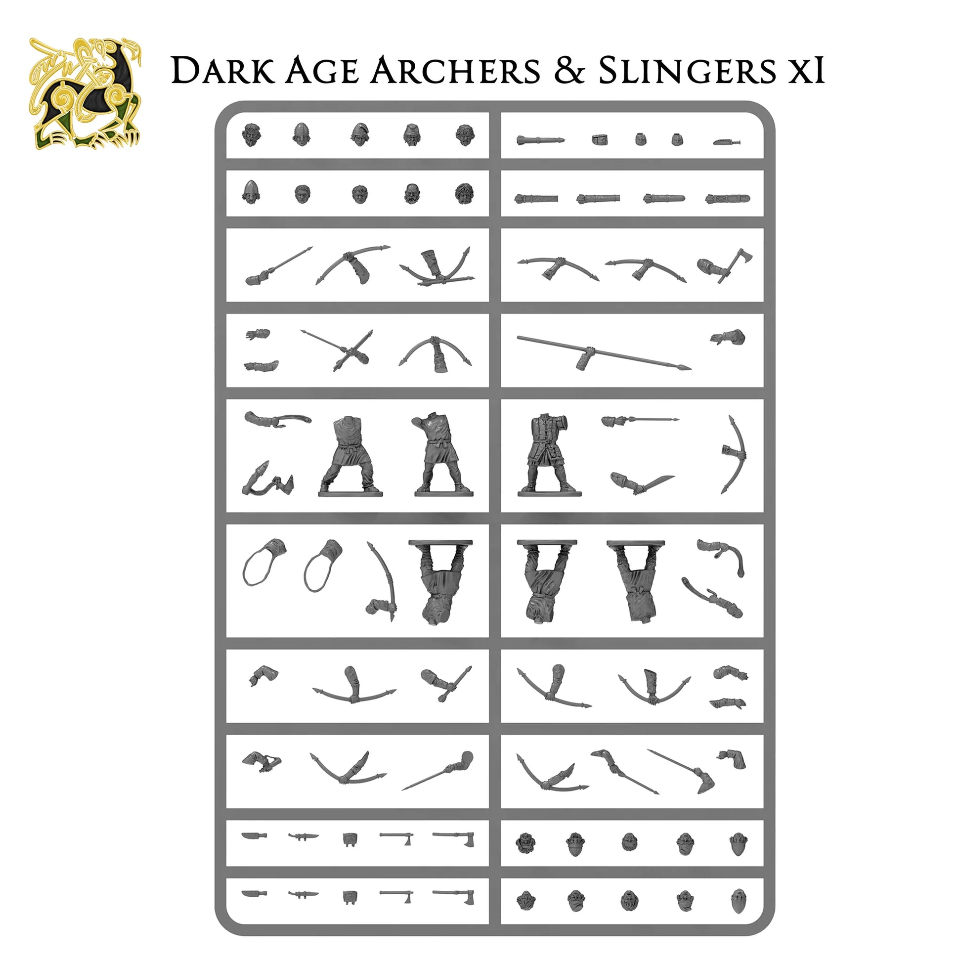 The set includes a wide mix of poses, weapons, shields, and head options, letting you build everything from elite warriors in helmets and cloaks to lightly equipped raiders and ranged support with bows. This set this provides everything you need to field a complete and Early Saxon Army.