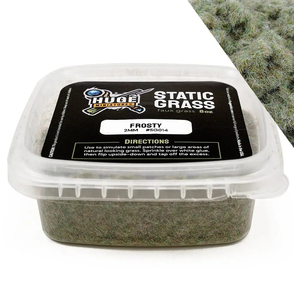 The premium grade 2mm Frosty static grass flock brings life to your tabletop. Contains 8 oz/vol. of static grass. Beautiful for grass, lawns, turf, and even as bush or tree highlight.