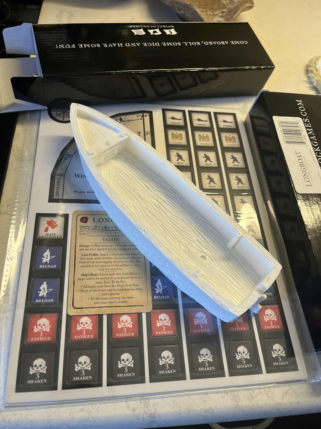 - 1 6.5″x2.125” Plastic Resin Hull (28mm scale)