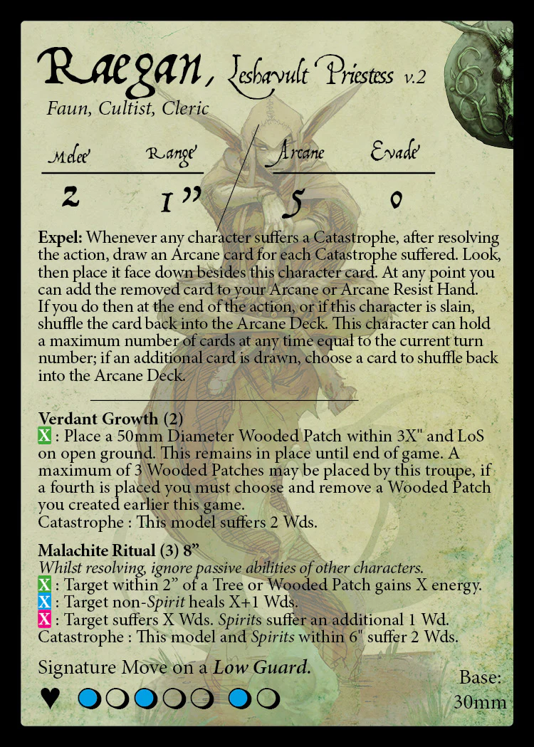 1 x Raegan, Leshavult Priestess Miniature and Stat Card