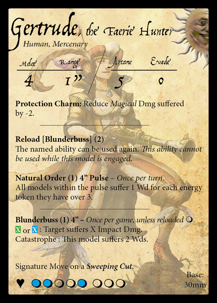 1 x Gertrude the Faerie Hunter, with Stat Card and Base