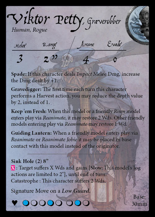 1 x Viktor Petty, Graverobber Miniature, Stat Card and base.
