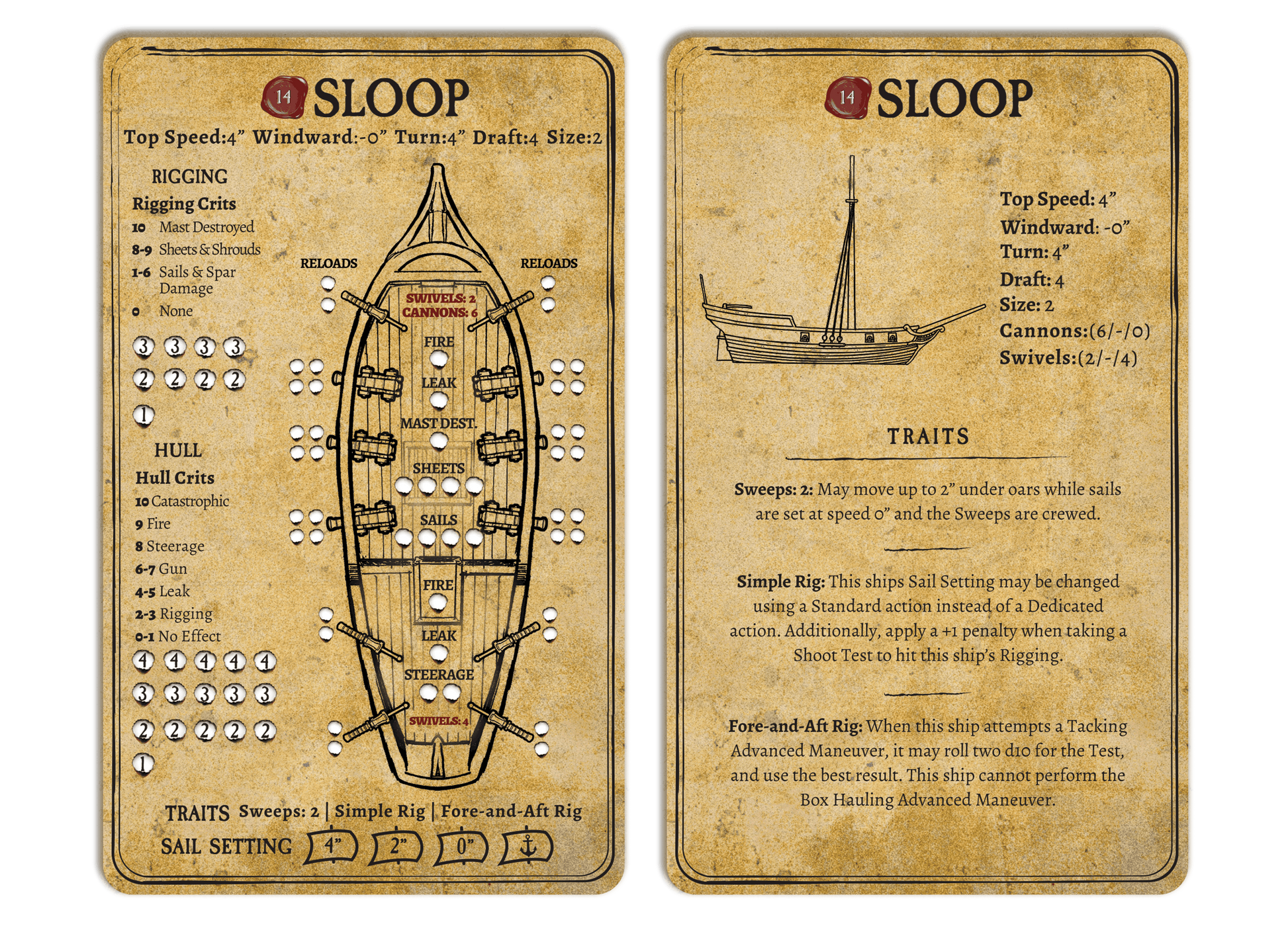 Sloop: Sloops are small swift vessels which sail well to windward and can venture close to shore. These fore and aft rigged ships were preferred among smugglers and coastal raiders.