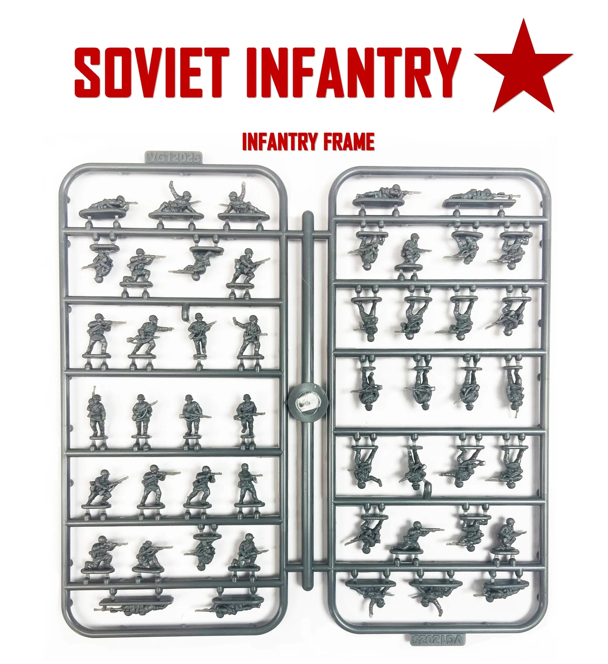 This 174 figure set features many different poses and weapon types. As well as standard infantry armed with rifles and SMGs it also includes a plethora of support weapons such as Maxim MMGs. anti tank rifles, 50mm and 82mm mortars.