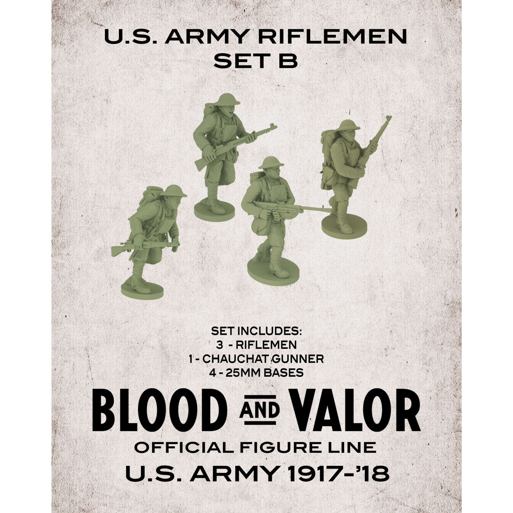 Reinforce your US Army 1917-'18 Starter Box with this expansion set. Designed for use with Firelock Games Blood & Valor WWI Rules. Figures sized 29mm(foot to eyes) Resin Models