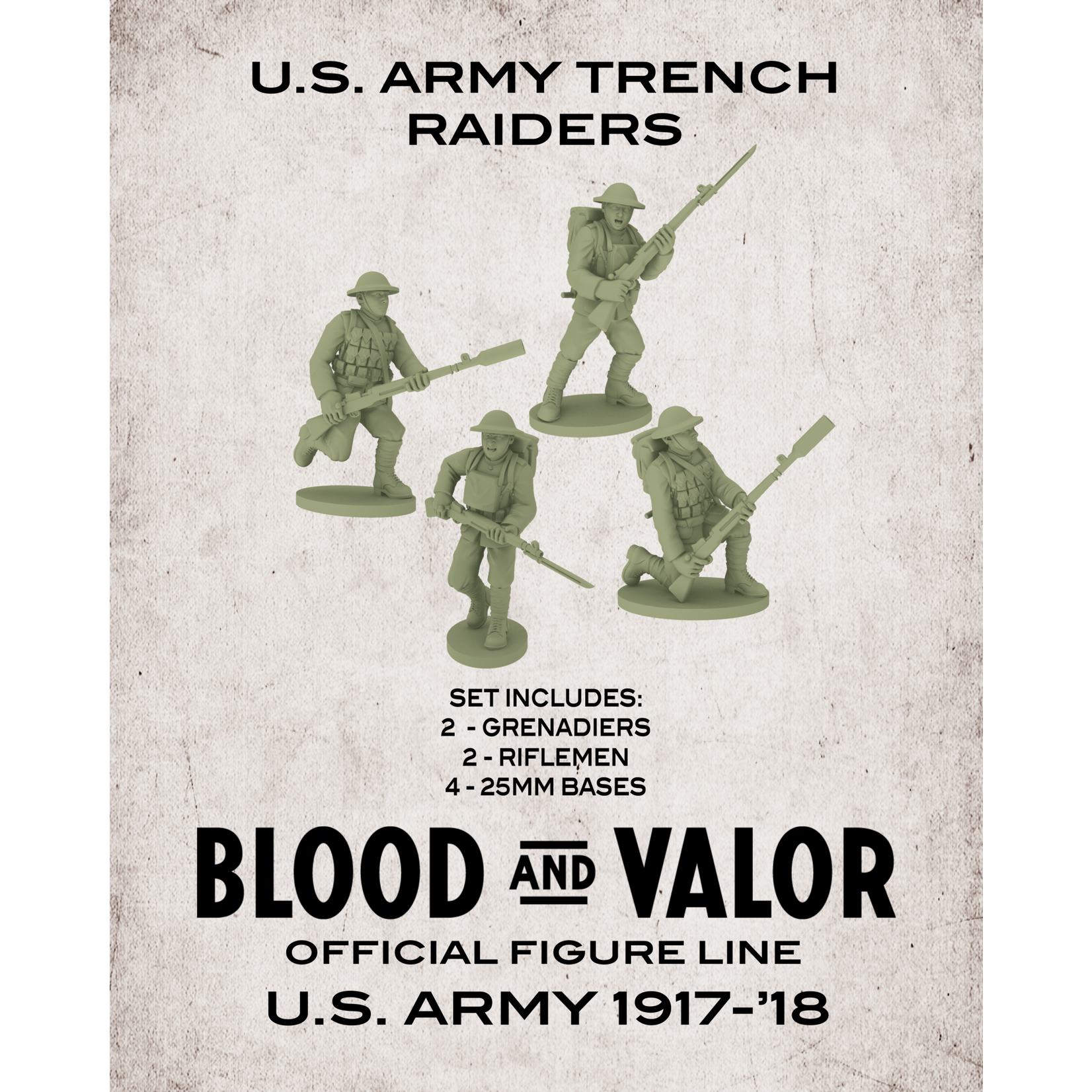 Reinforce your assault force with this expansion set. Designed for use with Firelock Games Blood & Valor WWI Rules. Figures sized 29mm(foot to eyes) Resin Models